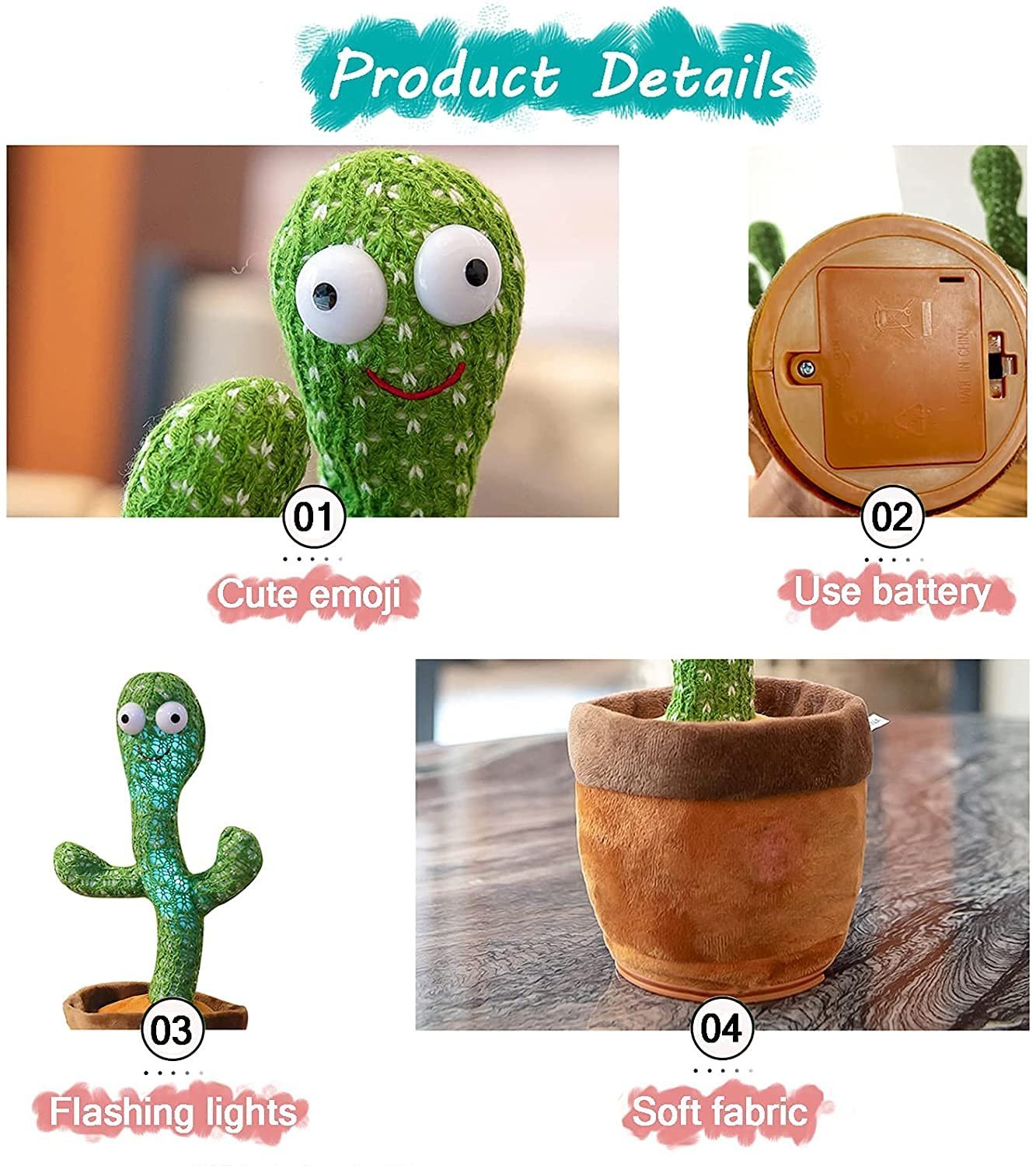 Electronic Dancing Cactus Toy with Lighting,Singing Cactus Recording and Repeat Your Words